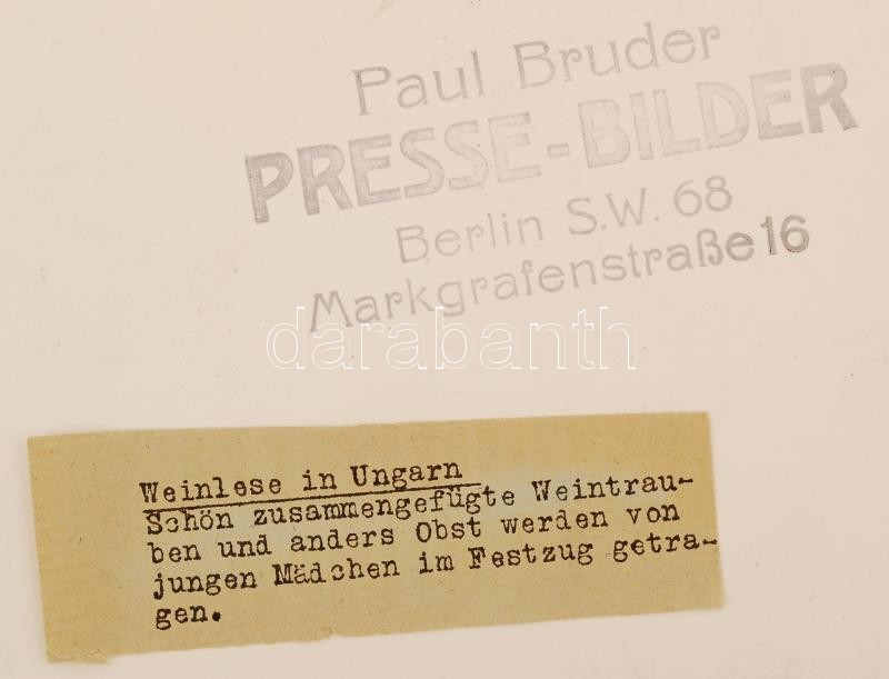 1930-1940 Szüret Magyarországon, Paul Bruder Presse-Bilder, hátoldalon... https://www.darabanth.com/de/223-Fernauktion/223.0/Andere-Sammelgebiete/Foto~34/1930-1940-Szuret-Magyarorszagon-Paul-Bruder-Presse-Bilder-hatoldalon-feliratozva-pecsettel-je~II973175