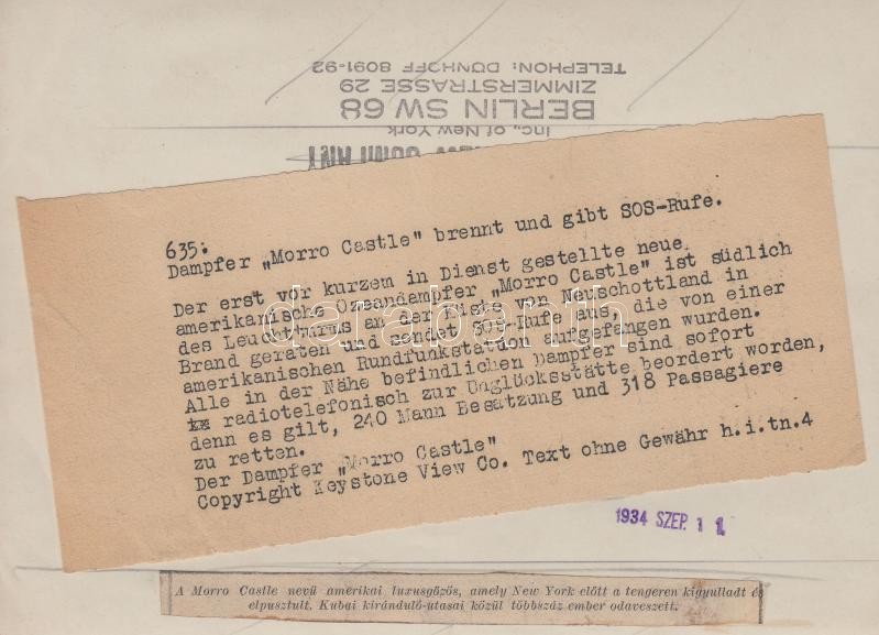 1934 A Morro Castle amerikai luxusgőzös, mely New York előtt a tengere... https://www.darabanth.com/de/223-Fernauktion/223.0/Andere-Sammelgebiete/Foto~34/1934-A-Morro-Castle-amerikai-luxusgozos-mely-New-York-elott-a-tengeren-kigyulladt-sajtofoto-~II972751