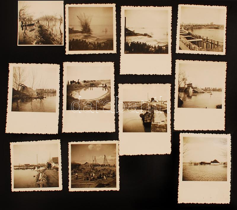 Beschreibung: 1941 Bp., Fotók árvízkárokról, Érsekcsanád, Dusnok, Negyven, 11 db fotó, 6x6 és 6x9 cm-es méretben