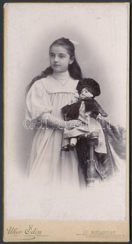 Kislány babával , keményhátú, régi fénykép. Uher Ödön műterme. Budapes... https://www.darabanth.com/de/223-Fernauktion/223.0/Andere-Sammelgebiete/Foto~34/Kislany-babaval--kemenyhatu-regi-fenykep-Uher-Odon-muterme-Budapest-16x8cm~II967387