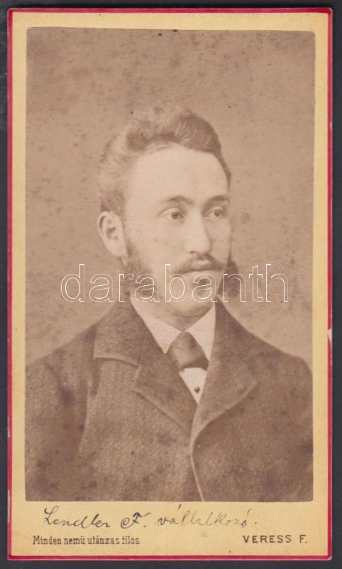 Lendler F. válalkozó, keményhátú, régi fénykép. Veress F. műterme. Kol... https://www.darabanth.com/de/223-Fernauktion/223.0/Andere-Sammelgebiete/Foto~34/Lendler-F-valalkozo-kemenyhatu-regi-fenykep-Veress-F-muterme-Kolozsvart-10x6cm~II967360