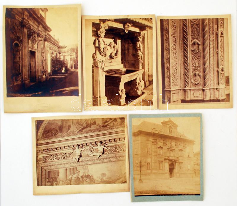 Régi, kartonra ragasztott városrészlet fotók 5db: Prága, Heidelberg, Firenze, ect. Különböző méretben: 26-21cm, 31x23cm / Old city protos (5p.) in different sizes: Prague, Heidelberg, Florenc