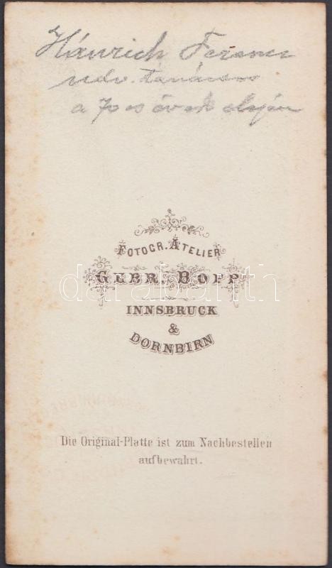 cca 1870 Hánzich Ferenc udvari tanácsos, keményhátú fotó, hátoldalon f... https://www.darabanth.com/de/223-Fernauktion/223.0/Andere-Sammelgebiete/Foto~34/cca-1870-Hanzich-Ferenc-udvari-tanacsos-kemenyhatu-foto-hatoldalon-feliratozva-6x10-cm~II968977