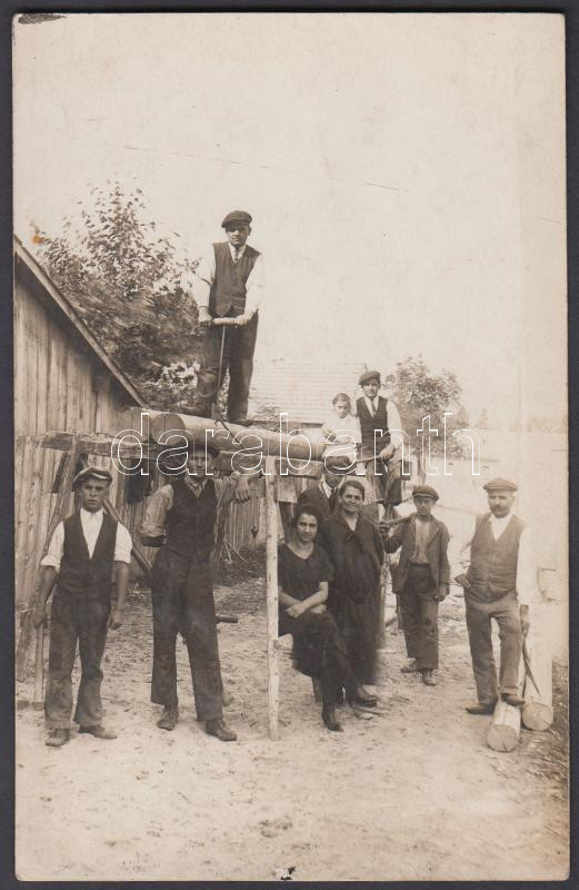 cca 1910 Rönkfűrészelés kézi erővel, fotólap, 14x9 cm https://www.darabanth.com/de/223-Fernauktion/223.0/Andere-Sammelgebiete/Foto~34/cca-1910-Ronkfureszeles-kezi-erovel-fotolap-14x9-cm~II966427