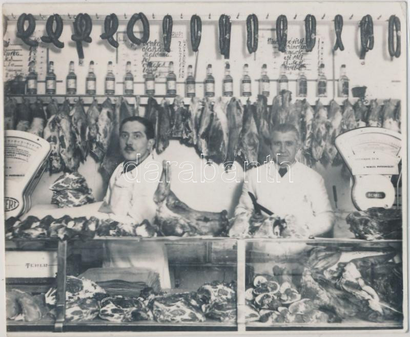 cca 1930 Budapest, egy hentes üzlet belső kirakata és árukínálata, 8,5... https://www.darabanth.com/de/223-Fernauktion/223.0/Andere-Sammelgebiete/Foto~34/cca-1930-Budapest-egy-hentes-uzlet-belso-kirakata-es-arukinalata-8-5x10-cm~II966538