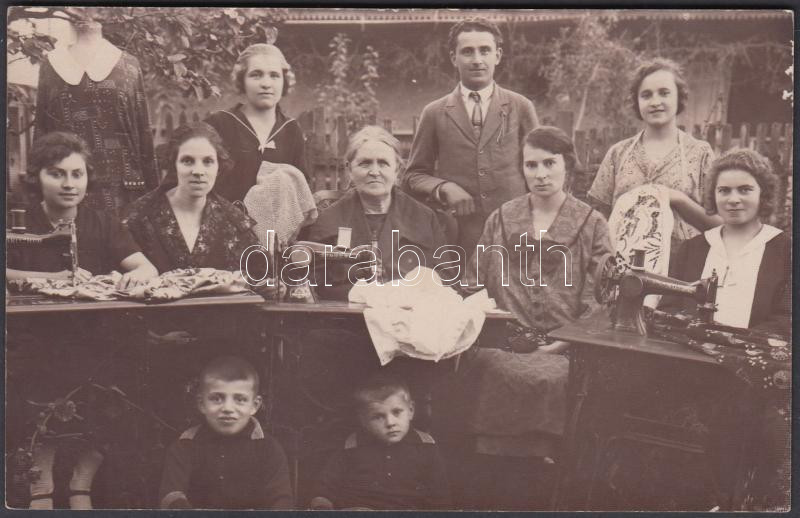 cca 1930 Varró, hímző családi vállalkozás, fotólap, 9x14 cm https://www.darabanth.com/de/223-Fernauktion/223.0/Andere-Sammelgebiete/Foto~34/cca-1930-Varro-himzo-csaladi-vallalkozas-fotolap--9x14-cm~II966429