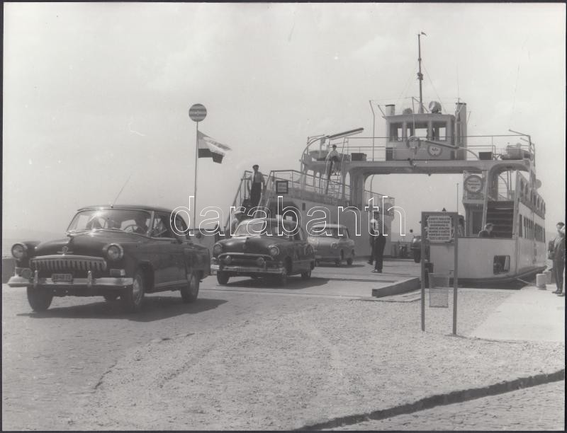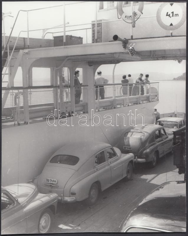cca 1960-1965 Szántód-Tihany balatoni komp üzem közben, 5 db jelzetlen fotó Kotnyek Antal (1921-1990) fotóriporter hagyatékából, későbbi nagyítások 18x24 cm