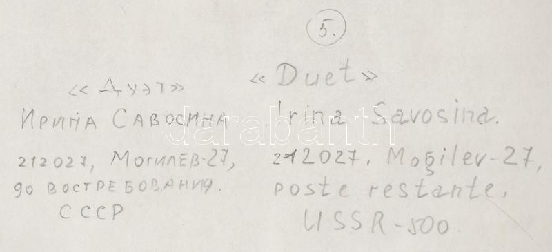 cca 1960 Irina Savisina (USSR): Duett, a szerző által feliratozott vin... https://www.darabanth.com/de/223-Fernauktion/223.0/Andere-Sammelgebiete/Foto~34/cca-1960-Irina-Savisina-USSR-Duett-a-szerzo-altal-feliratozott-vintage-fotomuveszeti-alkotC3~II966458