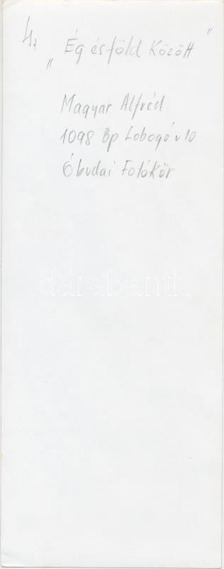 Beschreibung: cca 1970 Magyar Alfréd: Ég és föld között, a szerző által feliratozott vintage fotóművészeti alkotás, 24x9,5 cm