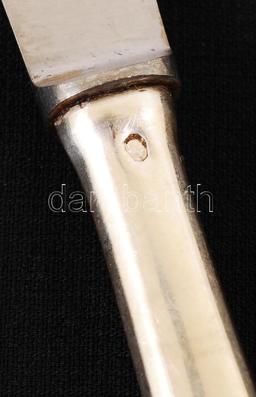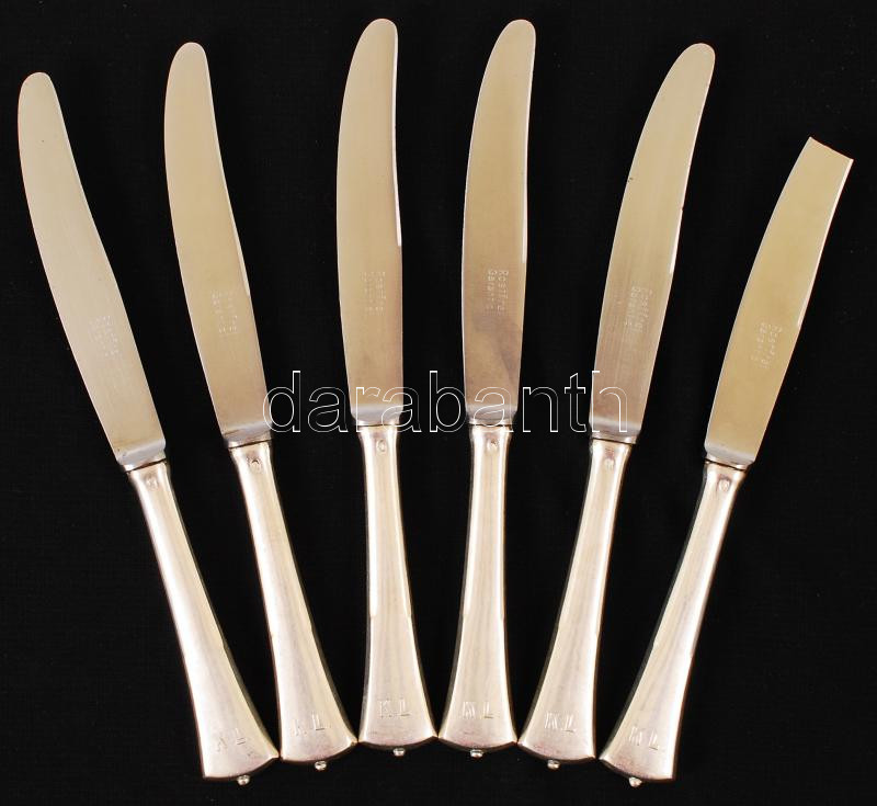 Beschreibung: 6 db ezüst (Ag.) süteményes kés "K. L." monogrammal, 1 db hibás, jelzett, br. 329 gr