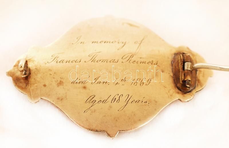 Aranyozott ezüst(Ag) antik angol (1869.) zománccal díszített, gravíroz... https://www.darabanth.com/de/223-Fernauktion/223.0/Andere-Sammelgebiete/Juwelen~40469/Aranyozott-ezustAg-antik-angol-1869-zomanccal-diszitett-gravirozott-bross-hianyos-igazg~II970026