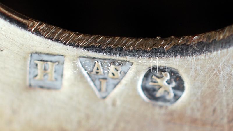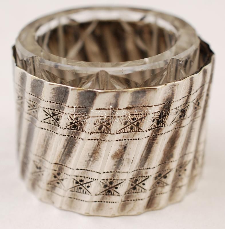 Ezüst(Ag) fűszertartó ezüst (Ag) kanalakkal, jelzett, üveg betétekkel,... https://www.darabanth.com/de/223-Fernauktion/223.0/Andere-Sammelgebiete/Juwelen~40469/EzustAg-fuszertarto-ezust-Ag-kanalakkal-jelzett-uveg-betetekkel-egyik-serult-50-7-g~II974739