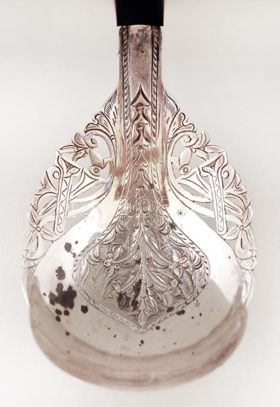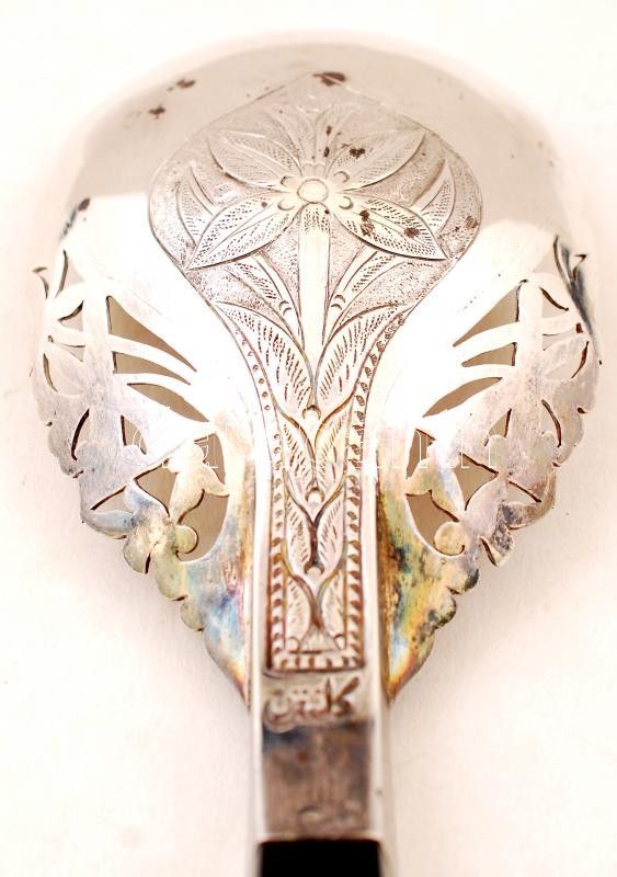 Gazdagon díszített ezüst (Ag) salátakeverő villa és kanál ébenfa nyéll... https://www.darabanth.com/de/223-Fernauktion/223.0/Andere-Sammelgebiete/Juwelen~40469/Gazdagon-diszitett-ezust-Ag-salatakevero-villa-es-kanal-ebenfa-nyellel-foltos-jelzett-~II970217