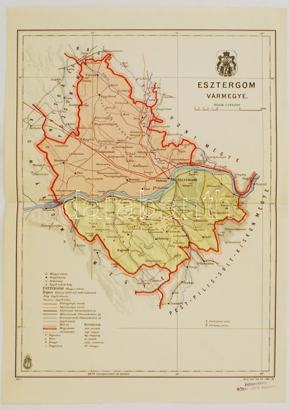 Esztergom Vármegye térkép. Mérték 1:250.000. M. kir. honv. Térk. Int. ... https://www.darabanth.com/de/223-Fernauktion/223.0/Andere-Sammelgebiete/Landkarten~6/Esztergom-Varmegye-terkep-Mertek-1250000-M-kir-honv-Terk-Int-Szep-allapotu-31x23c~II966698