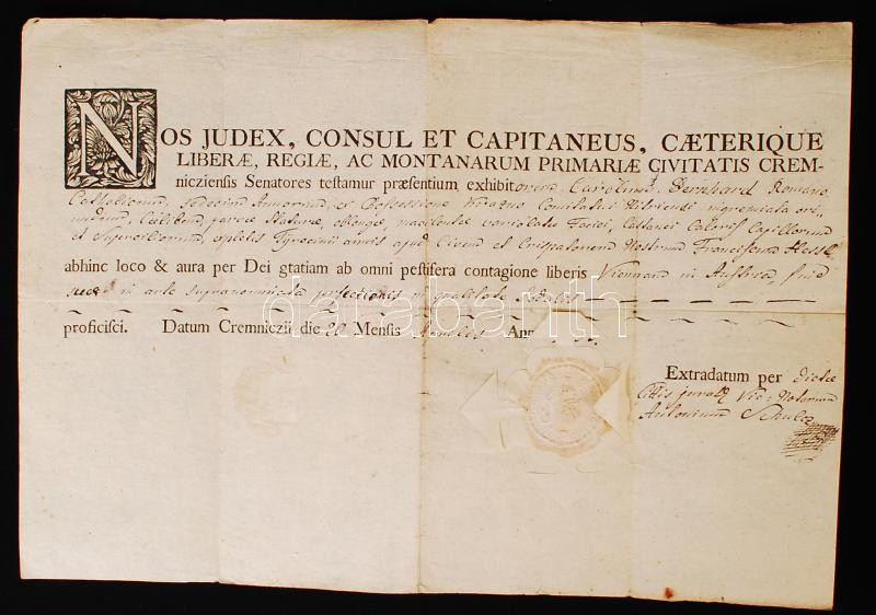 Beschreibung: 1803 Aljegyzői oklevél sorozásról, rányomott szárazpecséttel /