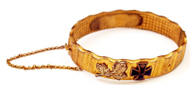 cca 1914 Srapnelből készült ovális karkötő, rajta tölgyfaággal és mini... https://www.darabanth.com/de/223-Fernauktion/223.0/Andere-Sammelgebiete/Militaria~5/cca-1914-Srapnelbol-keszult-ovalis-karkoto-rajta-tolgyfaaggal-es-miniatur-vaskereszttel-~II973068