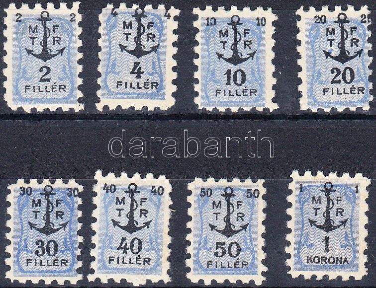 Beschreibung: Magyar Folyam és Tengerhajózási Részvénytársaság sor, 8 db bélyeg (nem ismert)