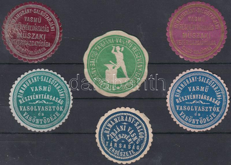 Beschreibung: Rimamurány Salgótarján Vasmű RT., Vasöntöde, Erdészet 6 db pecsétbélyeg