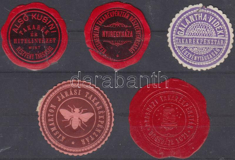 Beschreibung: Takarékpénztárak 5 db pecsétbélyeg (kis beszakadás)