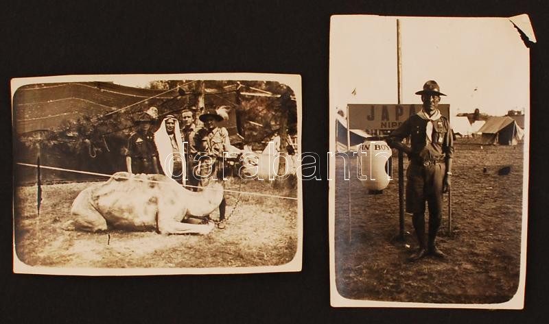 Beschreibung: Magyar, japán és arab cserkészek, egyenruhájukon az 1933-as gödöllői Jamboree csodaszarvas emblémájával, 2 db fotó, 6x8 cm