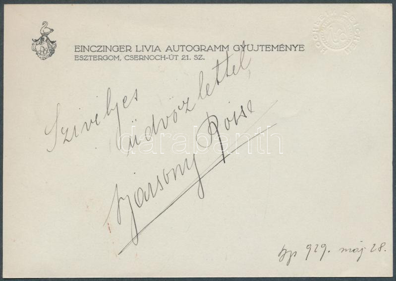 Beschreibung: Bársony Rózsi(1909-1977) magyar színésznő aláírása