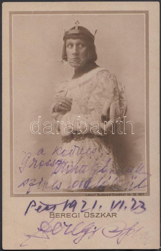 Beregi Oszkár (1876- 1965) magyar színész, rendező aláírása, ajánlása ... https://www.darabanth.com/de/223-Fernauktion/223.0/Andere-Sammelgebiete/Signatur~33/Beregi-Oszkar-1876-1965-magyar-szinesz-rendezo-alairasa-ajanlasa-az-ot-abrazolo-fo~II970499