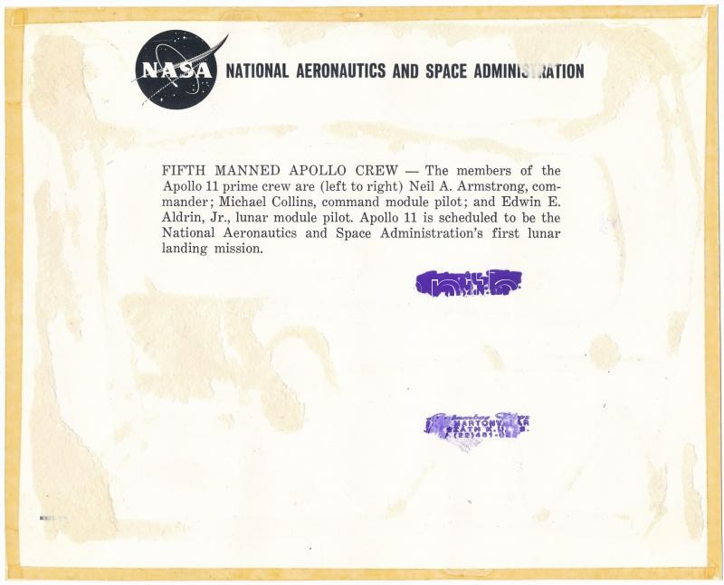Beschreibung: Neil A. Armstrong, Michael Collins, Edwin E. Aldrin amerikai űrhajósok, az Apollo 11 személyzete.