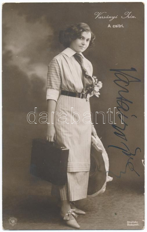 Varsányi Irén, született Wollner Malvin (1876–1932) színésznő al... https://www.darabanth.com/de/223-Fernauktion/223.0/Andere-Sammelgebiete/Signatur~33/Varsanyi-Iren-szuletett-Wollner-Malvin-1876238211-1932-szineszno-alairasa-az-ot-abraz~II975534