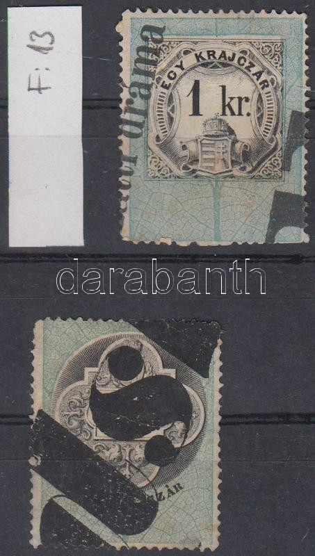 Beschreibung: 1873 1kr, 2kr előérvénytelenített okmánybélyegek
