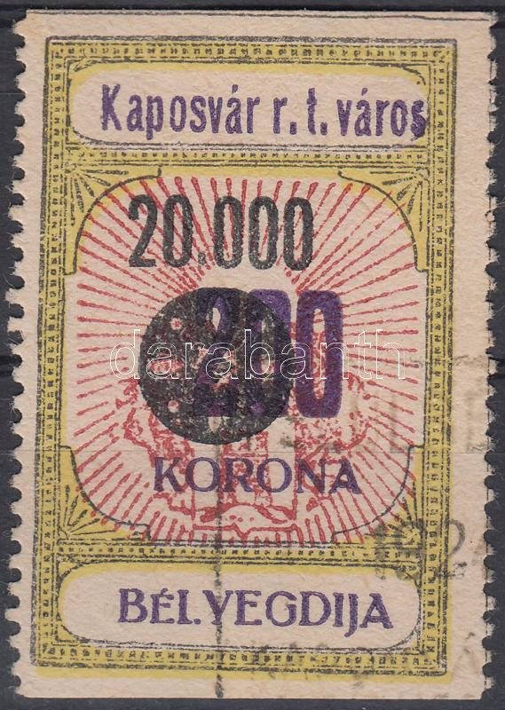 1924 Kaposvári városi illetékbélyeg 20.000/200K eltolódott felülnyomás... https://www.darabanth.com/de/223-Fernauktion/223.0/Andere-Sammelgebiete/Stempelmarken~30/1924-Kaposvari-varosi-illetekbelyeg-20000200K-eltolodott-felulnyomassal~II968359