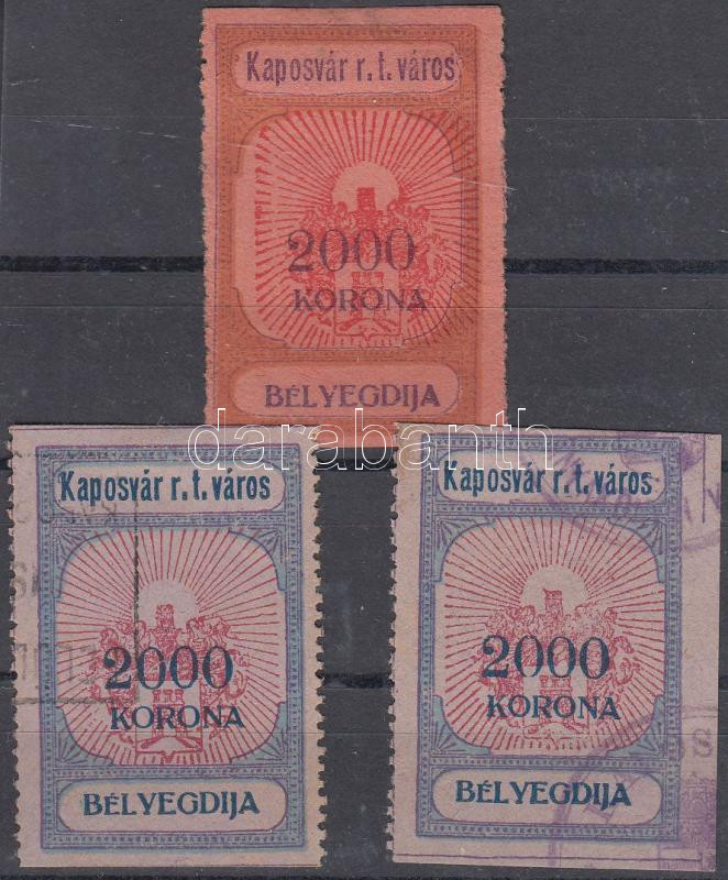 1924 Kaposvári városi illetékbélyeg 2000K 3 db https://www.darabanth.com/de/223-Fernauktion/223.0/Andere-Sammelgebiete/Stempelmarken~30/1924-Kaposvari-varosi-illetekbelyeg-2000K-3-db~II968305