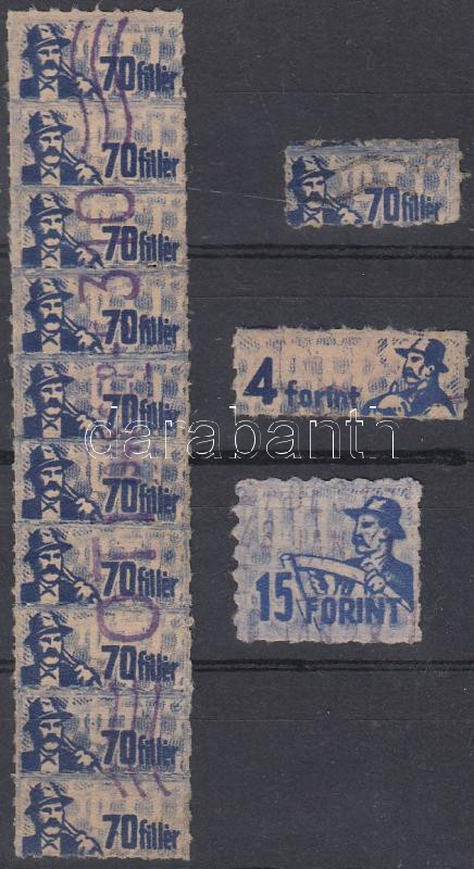 1947 SzTK I. Biztosítási Csoport első sora, ritka! 70f, 4Ft, 15Ft https://www.darabanth.com/de/223-Fernauktion/223.0/Andere-Sammelgebiete/Stempelmarken~30/1947-SzTK-I-Biztositasi-Csoport-elso-sora-ritka-70f-4Ft-15Ft~II968549