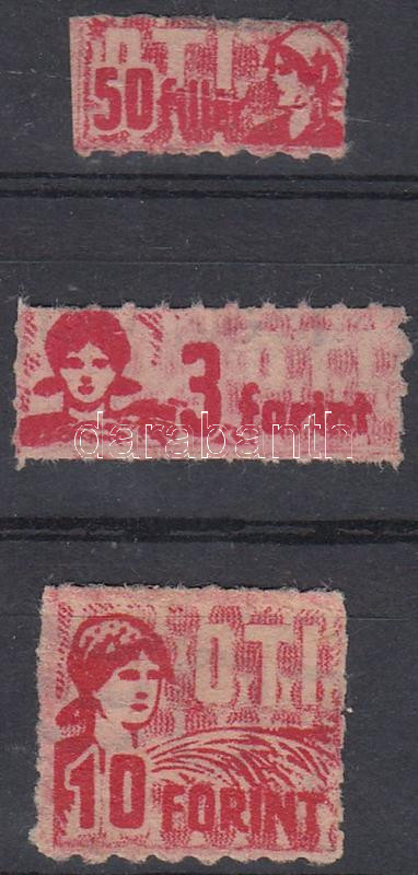Beschreibung: 1947 SzTK II. Biztosítási Csoport első sora, ritka! 50f, 3Ft, 10Ft