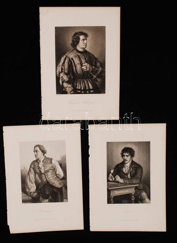1864 3 db metszet, a Goethe-Galerie c. kiadvány (Lipcse, 1864, Druck und Verlag von F. A. Brockhaus) illusztrációi: Hermann, acélmetszet, Friedrich Pecht (1814-1903) rajza alapján metszette Adrian Schleich (1812-1894), 17×12 cm; Franz von Sickingen, acélmetszet, Friedrich Pecht (1814-1903) rajza alapján metszette A. Schultheiss, 17×12 cm; Eduard, acélmetszet, Friedrich Pecht (1814-1903) rajza alapján metszette Adrian Schleich (1812-1894), 17×12 cm /