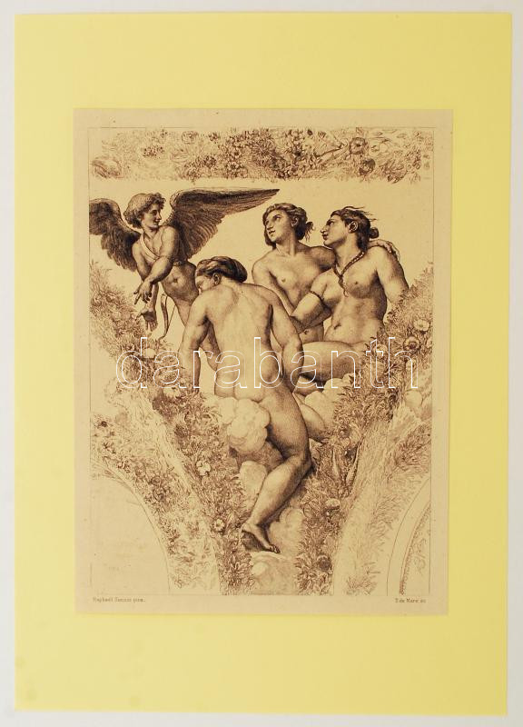 Beschreibung: cca 1880 Cupido és a három grácia, Raffaello festménye nyomán metszette Tiburce de Mare (1840-1900), rézkarc, papír, jelzett, 19×14,5 cm