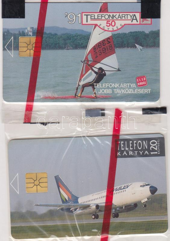 1991-1992 2 db telefonkártya (Balaton Surf (első kiadás!), Malév), bon... https://www.darabanth.com/de/223-Fernauktion/223.0/Andere-Sammelgebiete/Telefonkarte~37/1991-1992-2-db-telefonkartya-Balaton-Surf-elso-kiadas-Malev-bontatlan-csomagolasban~II966908