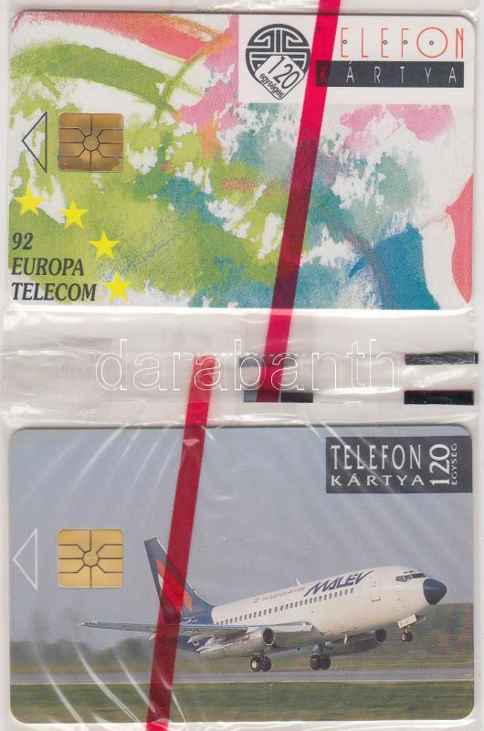 Beschreibung: 1992 2 db telefonkártya (Monétel, Malév), bontatlan csomagolásban