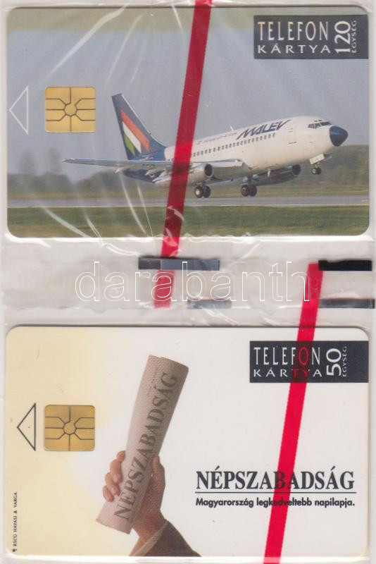 Beschreibung: 1992 2 db telefonkártya (Népszabadság, Malév), bontatlan csomagolásban