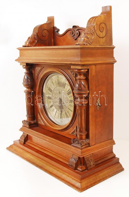 Beschreibung: Gustav Becker konzol óra, ónémet faragott házban, működik, jelzett, ingával, kulccsal, 55×25 cm, m:65 cm/ Gustav Becker bracket clock