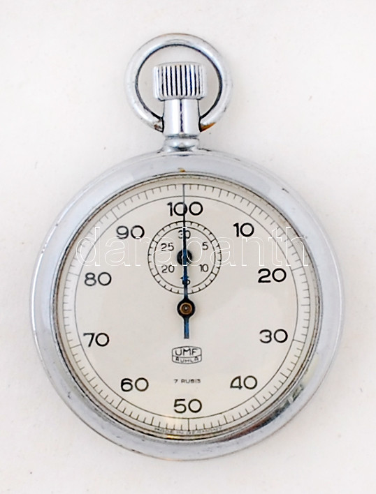 Beschreibung: UMF Ruhla márkájú német stopperóra, hátoldalán sorszámmal (304351), valamint kisebb kopásnyomokkal, működik