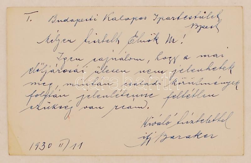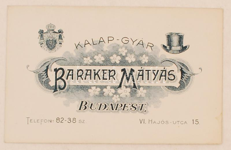 1930 Bp., Baraker Mátyás Kalapgyárának reklámkártyája hátoldalán üzene... https://www.darabanth.com/de/223-Fernauktion/223.0/Andere-Sammelgebiete/Werbungen~35/1930-Bp-Baraker-Matyas-Kalapgyaranak-reklamkartyaja-hatoldalan-uzenettel~II972078