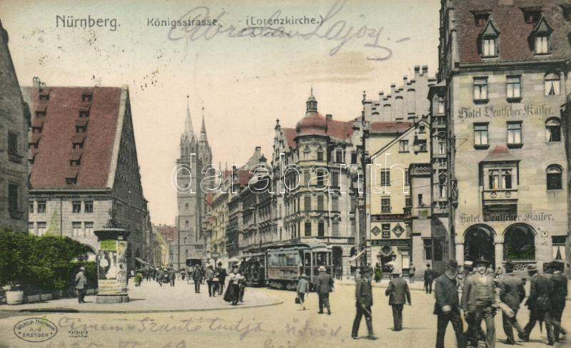 Nürnberg, Königstrasse, Lorenzkirchem / street, church, hotel, tram (R... https://www.darabanth.com/de/223-Fernauktion/223.0/Ansichtskarten/Deutschland~40421/Nurnberg-Konigstrasse-Lorenzkirchem-street-church-hotel-tram-Rb~II892975