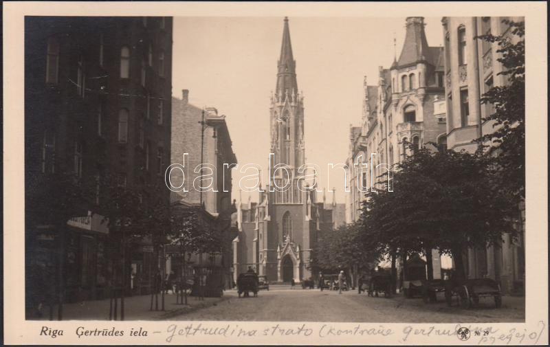 Riga, Gertrudes iela / street, church https://www.darabanth.com/de/223-Fernauktion/223.0/Ansichtskarten/Lettland~40457/Riga-Gertrudes-iela-street-church~II893720