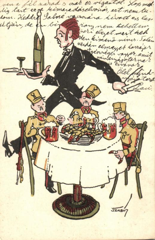 Hungarian military humour, beer drinking soldiers, waiter s: Szabó (EK... https://www.darabanth.com/de/223-Fernauktion/223.0/Ansichtskarten/Militaria~40389/Hungarian-military-humour-beer-drinking-soldiers-waiter-s-Szabo-EK~II973191