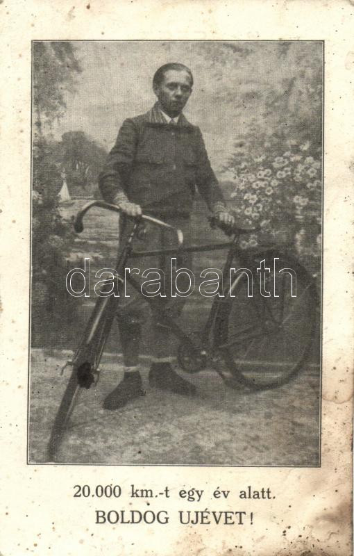 Beschreibung: Medovarszky Pál magyar turista, 20.000 km.-t egy év alatt, Boldog Új Évet / Hungarian tourist, bike, New Year (fl)
