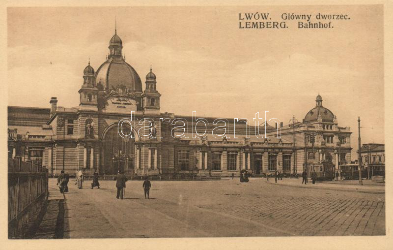 Lviv, Lwów; Glówny dworzec, Bahnhof / railway station https://www.darabanth.com/de/223-Fernauktion/223.0/Ansichtskarten/Ukraine~40453/Lviv-Lwow-Glowny-dworzec-Bahnhof-railway-station~II818148