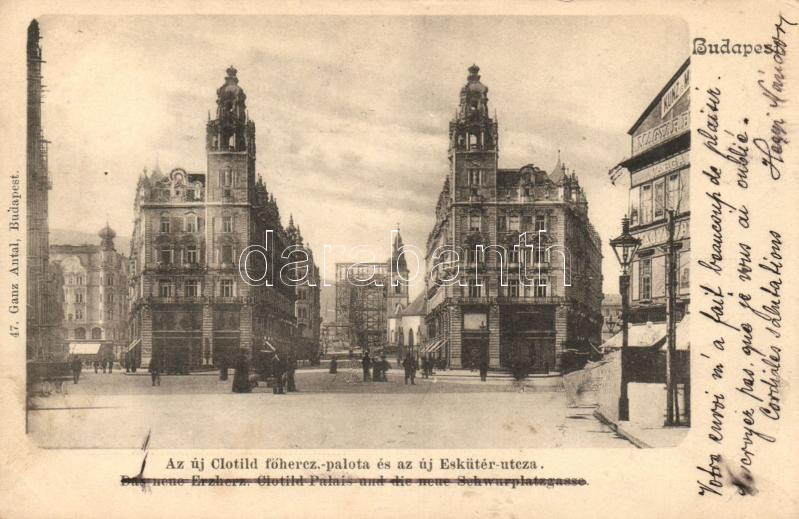 Budapest V. Eskütér utca, Klotild főherceg palota, Varga üzlete, Ganz ... https://www.darabanth.com/de/223-Fernauktion/223.0/Ansichtskarten/Ungarn~20006/Budapest-V-Eskuter-utca-Klotild-foherceg-palota-Varga-uzlete-Ganz-Antal-kiadasa~II970875