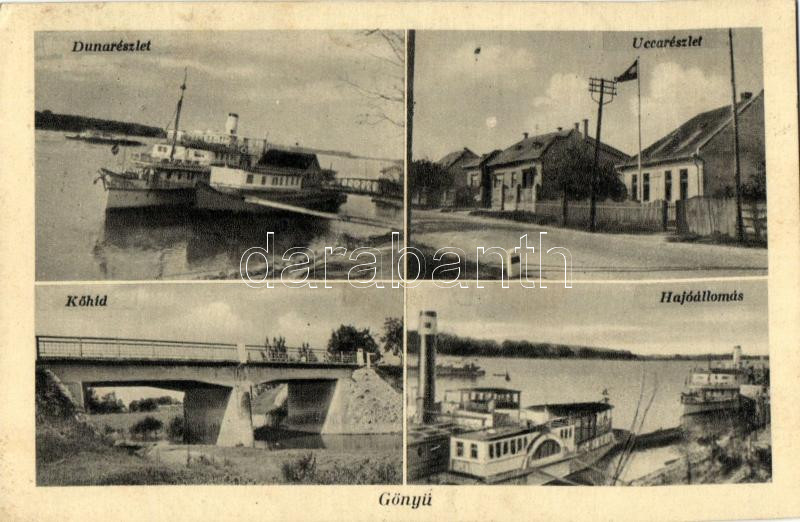 Gönyű, utca, hajóállomás, Kőhíd, gőzhajó (EK) https://www.darabanth.com/de/223-Fernauktion/223.0/Ansichtskarten/Ungarn~20006/Gonyu-utca-hajoallomas-Kohid-gozhajo-EK~II973004