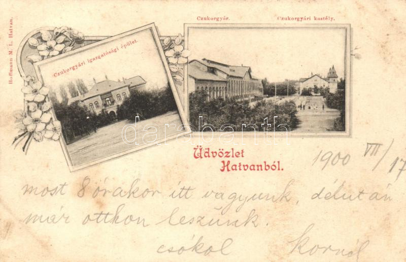 Hatvan, Cukorgyári kastély és igazgatósági épület; floral, kiadja Hoff... https://www.darabanth.com/de/223-Fernauktion/223.0/Ansichtskarten/Ungarn~20006/Hatvan-Cukorgyari-kastely-es-igazgatosagi-epulet-floral-kiadja-Hoffmann-M-L-fl~II971777