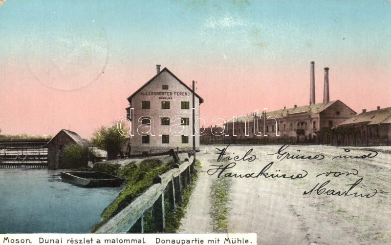 Beschreibung: Moson, Allersdorfer Ferenc Műmalma, Kühne gépgyár; kiadja Freitag Frigyes papírkereskedő (EK)
